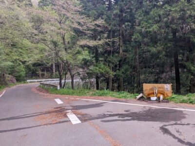 【小野上清水】(群馬県の水汲み場)渋川市小野子 山道のカーブの途中にある 水量豊富な水分補給地点