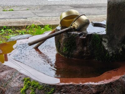 【中目黒八幡神社の神水】(東京都の湧水)目黒区中目黒 参道階段手前にも引かれている 地元の人々に尊ばれる境内の神泉