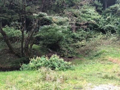 【木の俣の湧水】(栃木県の湧水)那須塩原市百村 深山ダムへ向かう県道沿いの木立の手前で湧き出る 夏でも冷たい湧き水