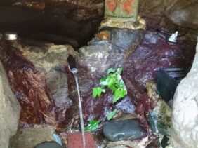 【猿田洞の長寿泉】(高知県の湧水)高岡郡日高村沖名 土佐のねずみ小僧が修行をした 石灰洞の入り口にある長寿祈願の水