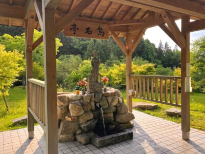 【差首鍋のすず水】(山形県の湧水)最上郡真室川町差首鍋 坂の途中のお地蔵様の隣で流れ出る 病を避け・長生きするという澄んだ延命水