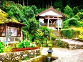 【弁財天様 水くみ場】(山口県の水汲み場)美祢市秋芳町別府 ターコイズブルーの弁天池のほとり 別府厳島神社の境内で湧き出る