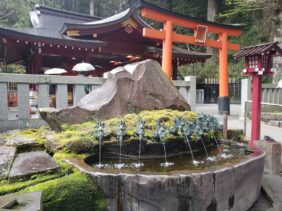 【龍神水舎】(神奈川県の水汲み場)足柄下郡箱根町元箱根 九頭龍大神が祀られる箱根神社境内で 九つの龍口から御神水が注がれる水舎