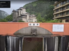 【あつみ温泉 飲泉所】(山形県の水場)鶴岡市湯温海甲 温泉街の橋の中央で風流な景色を眺め 川風に吹かれながら飲める温泉