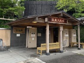 【あわくら温泉元湯 温泉自動販売所】(岡山県の水汲み場)英田郡西粟倉村影石 その昔タヌキが傷を癒した伝説の湯 塩谷川のほとりにある温泉スタンド