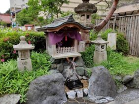 【山中温泉 飲泉所】(石川県の水飲み場)加賀市山中温泉湯の出町 日本三大民謡・山中節の始まり浴衣べー地蔵が祀られている 山名温泉総湯前の飲泉所