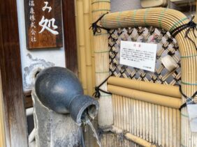 【山中温泉 飲泉所】(石川県の水飲み場)加賀市山中温泉湯の出町 日本三大民謡・山中節の始まり浴衣べー地蔵が祀られている 山名温泉総湯前の飲泉所
