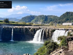 【原尻の滝】(大分県の水辺)豊後大野市緒方町原尻 日本の滝百選・東洋のナイアガラ 大自然が生んだ幅120m落差20mの柱状節理