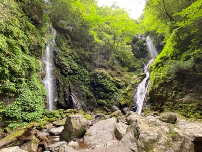 【雨乞の滝】(徳島県の水場・日本の滝百選)名西郡神山町神領谷 夏でも肌寒いという 四国自然歩道にある雌雄2つの夫婦滝