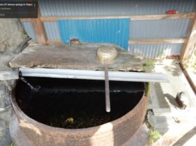 【釜の水】(東京の名湧水57選)西多摩郡奥多摩町 のどかな山間の坂の途中 大釜に蓄えられ続ける軟水