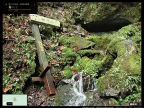 【獅子口の水】(東京の名湧水57選)東京都西多摩郡奥多摩町大丹波字曲ヶ谷 川苔山中腹にある登山者のオアシス 獅子の口のような岩場から湧き出る清澄な水