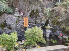 【西行水】(滋賀県の湧水)米原市醒井 西行法師の伝説が残る泡子塚そばにある 崖下の岩間から湧き出る水
