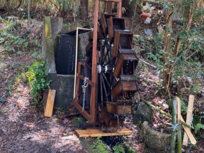 【宮本水車場】(京都府の水場)綴喜郡井手町井手東前田 江戸時代に生活を潤した 玉川の豊かな水で回る復刻水車