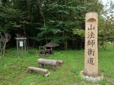 【しの川原の湧き水】(岩手県の水汲み場)岩手郡雫石町長山篠川原 山法師街道の道標が目印 ミニチュア水車が回る休憩所