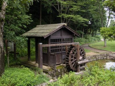 【能登川水車】(大阪府の水場)富田林市錦織 昔ながらの農村風景を楽しめる 錦織公園の水車小屋