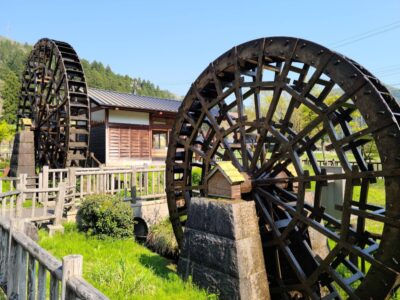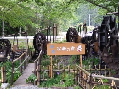【田原水車の里】(静岡県の水場)磐田市三ケ野 清流のほとり 6基の地域手作り水車が人々の心を癒す公園
