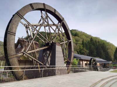 【竹田水車メロディーパーク】(福井県の水場)坂井市丸岡町山口 2連水車が悠々と回転し メロディチャイムの響く癒しスポット