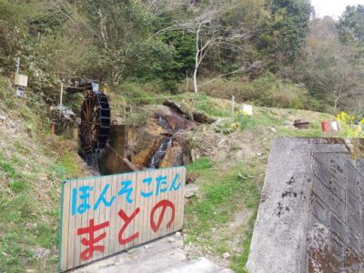 【2号機(木製水車)と交流広場】奈良県山辺郡山添村的野 清流で豆腐作りをしていた場所で 自らライトアップの発電も行う木製水車