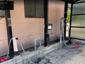 【富士吉田市温泉スタンド】(山梨県の水汲み場)富士吉田市上吉田 ふじさんミュージアムパークそば 何時でも自由に利用できる 無料の浴用温泉スタンド