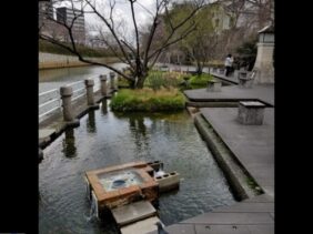 【清水わくわく水】(愛知県の湧水)名古屋市北区黒川本通1丁目 かつて舟が係留していた親水広場にある 自噴する湧水井戸