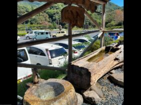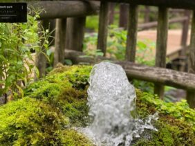 【しづも清水】(岐阜県の水汲み場)中津川市山口 道の駅賤母で汲める・貴重な原生林の裏山から湧き出る清水