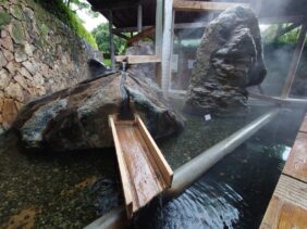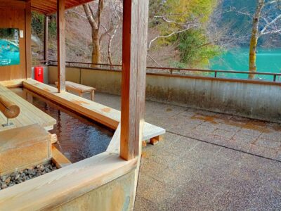 【十津川温泉 庵の湯 足湯・飲泉所】(奈良県の水場)吉野郡十津川村平谷 きり傷、やけど、神経痛、糖尿病に効く 二津野ダム湖を展望する日帰り温泉施設