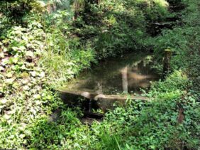 【ちせいの里及び蛍流公園の石清水】(愛知県の湧水)岡崎市茅原沢町茅生 日本酒造りに使われるという 住宅地の隣の沢に湧き出る石清水