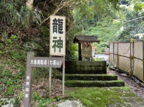 【龍神の湧水】(奈良県の湧水)五條市大塔町殿野 清流沿いの林道脇で湧き出る 龍神様の祠の岩清水