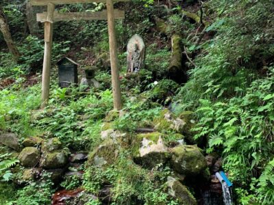 【水方不動尊の水】(山形県の湧水)山形市柏倉 大森山の麓にある深山幽谷の社 眼病平癒の御利益がある湧水