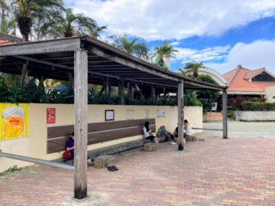 【北谷恵み温泉 美浜の湯 足湯】(沖縄県の水場)中頭郡北谷町美浜 サンセットビーチ沿いの公園内にある 屋根付き無料足湯