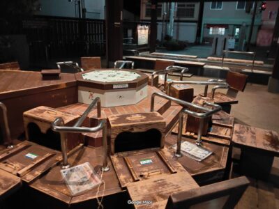 【道後館の足湯】(愛媛県の水場)松山市道後多幸町 温泉ホテル手前の鬼瓦が目印 玉砂利で足裏マッサージできる無料足湯