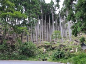 【花脊峠の湧き水】(京都府の湧水)京都市左京区鞍馬本町 峠のヘアピンカーブの外側にある 杉林の手前の水汲み場