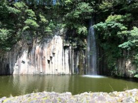 【玉垂の滝】(宮崎県の湧水)西臼杵郡高千穂町三田井 阿蘇山が噴火してできた柱状節理の岩々を伝って落ちる伏流瀑