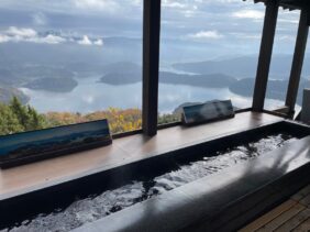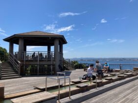 【天空の足湯】(福井県の水場)三方上中郡若狭町気山 レインボーライン・美浜テラス 三方五湖と日本海を一望する絶景スポット
