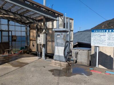 【水仙の里温泉 温泉スタンド】(福井県の水汲み場)福井市居倉町 日本海を望む高台にある ガラガラ山の地下深くから湧き出る温泉汲み場