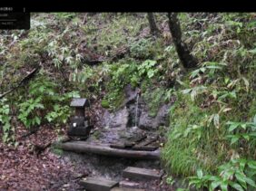 【獅子口の水】(東京の名湧水57選)東京都西多摩郡奥多摩町大丹波字曲ヶ谷 川苔山中腹にある登山者のオアシス 獅子の口のような岩場から湧き出る清澄な水