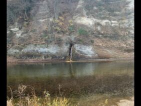 【向山の湧水】(宮城県の湧水)仙台市太白区向山 広瀬川沿いの絶壁の裂け目から勢いよく流れ落ちる湧水